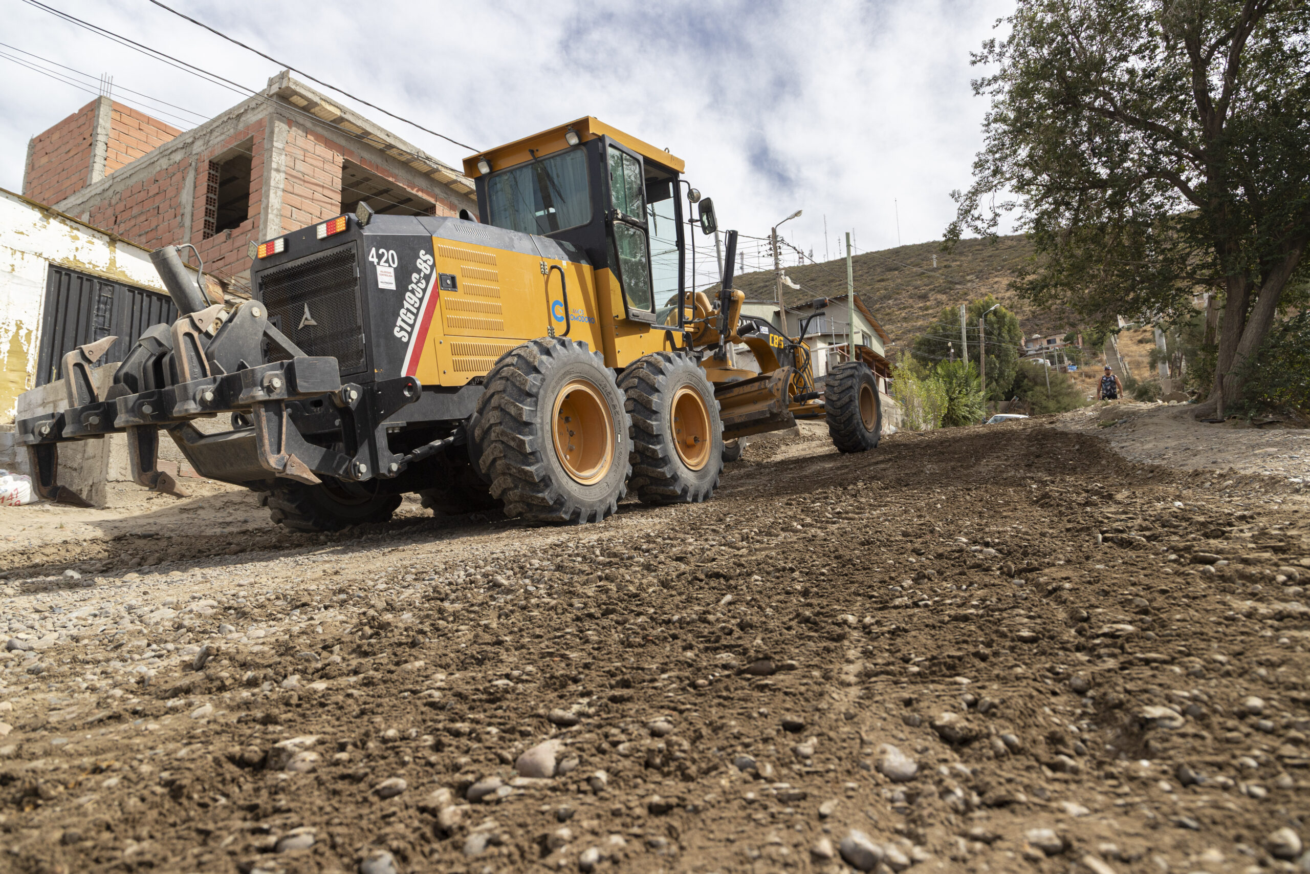 Las tareas incluyeron repaso con motoniveladora en las calles Los Pinos, Carabelas, Pasaje Fragata