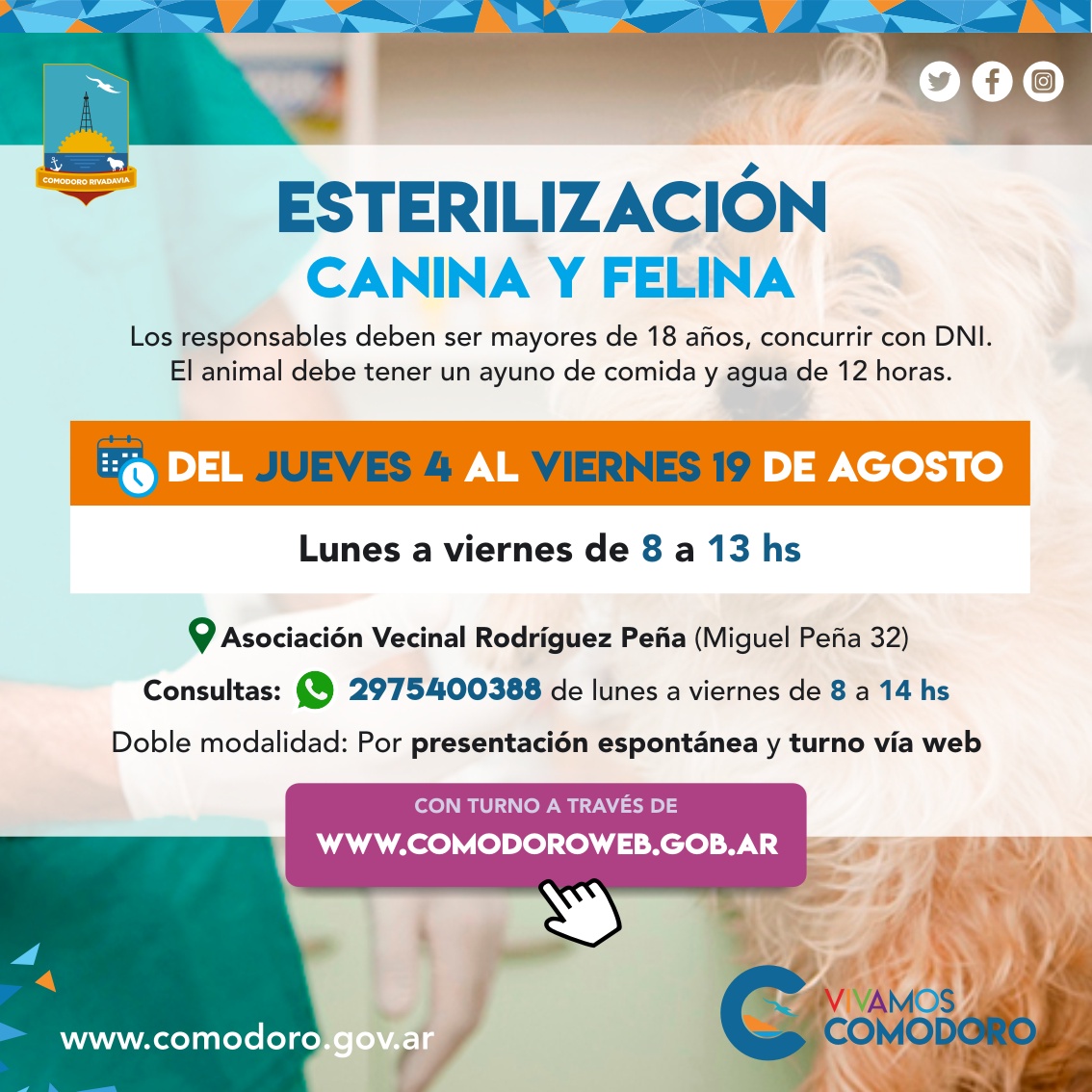 Turnos para Rodríguez Peña en comodoroweb.gob.ar Recordà llevarlos con su correspondiente correa, a los